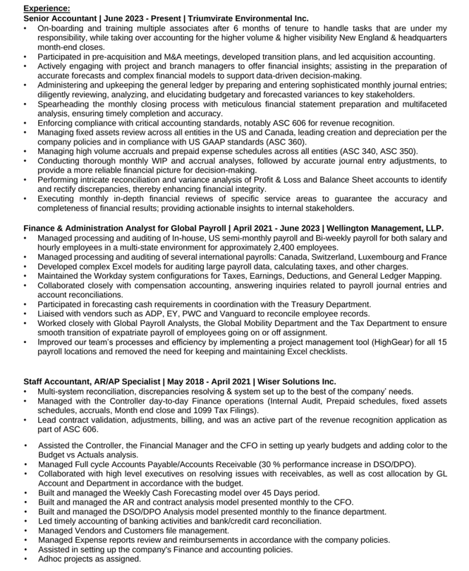 Experienced accounting and finance professional specializing in streamlining operations and digital transformation. I help small businesses modernize their bookkeeping, payroll, and financial systems using tools like QuickBooks Online and Bill.com. Based in Boston, focused on practical, efficient solutions.